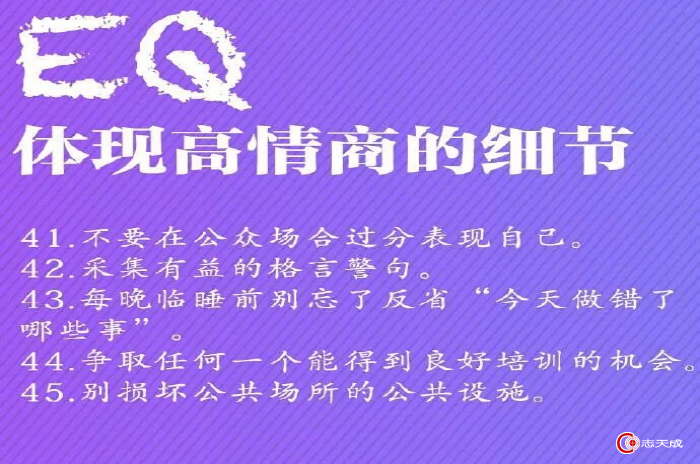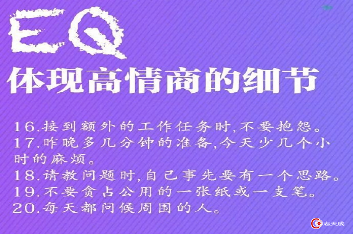 不批评、不指责别人,不抱怨、不埋怨。其实,抱怨和指责都是不良情绪, 它们会传染。高情商的人只做有意义的事情,不做没意义的。