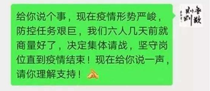 这就是中国人的灵活和乐观。他们不顽固,不任性,懂得顺势而为。他们无法都去一线参与救援,但基本都可以做好自己。 第三,中国人有大局观和牺牲精神。 疫情前期,情况危急,一线需要支援。谁都知道危险,但依然有大量的医护人员、公安干警、社区工作者毫不畏惧地顶上去。那时,每天都有类似的请战书刷屏,话语朴实,但特别触动人心: