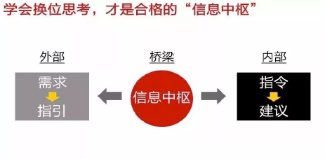 如果说“知识延伸”是在智商层面解决了问题,那么“换位思考”就是在情商层面帮助大家摆脱传声筒的坏习惯。这时考验的就是你说话的本事了。换位思考,就是把自己置于对方的角色上,然后思考你传递的信息是否能被完整地接受。具体怎么去做呢?一句话概括:把需求变成指引,把指令变成建议(如下图)。