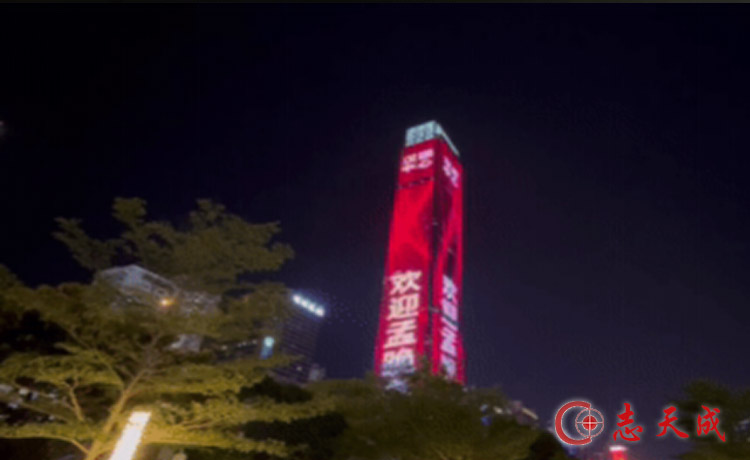 深圳多处高楼打出“欢迎孟晚舟回家”字样 视频截图